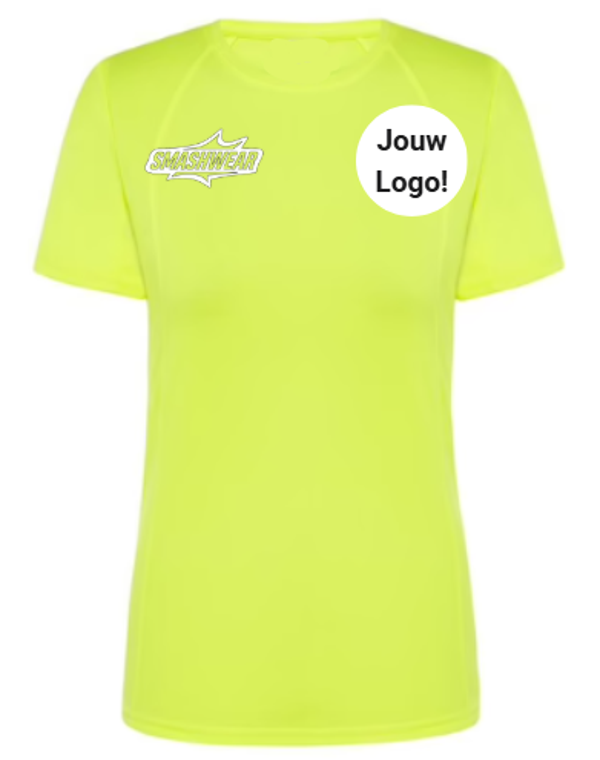 Het sportieve SmashWear T-Shirt is gemaakt voor vrouwen en is van 100% polyester. Het shirt is gemaakt voor alle racketsporten en is customisable.